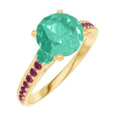 Inel Aur galben 18 carate - Smarald rotund 1 carate - Pietre laterale Smarald - Încrustare Rubin