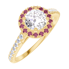 Inel Aur galben 9 carate - Diamant rotund 0.5 carate - Halo Rubin - Încrustare Diamant