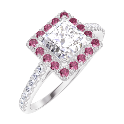 « L'ATELIER » Nº170071Inel Aur alb 18 carate - Diamant Princess 0.5 carate - Halo Rubin - Încrustare Diamant 4.1