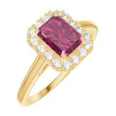 Inel Aur galben 18 carate - Rubin Smarald 0.5 carate - Halo Diamant