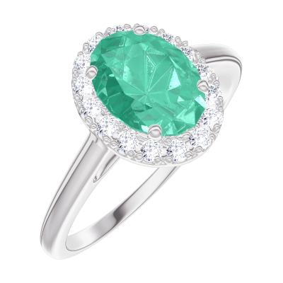 « L'ATELIER » NR. 171011Inel Aur alb 18 carate - Smarald Oval 0.5 carate - Halo Diamant 4.5