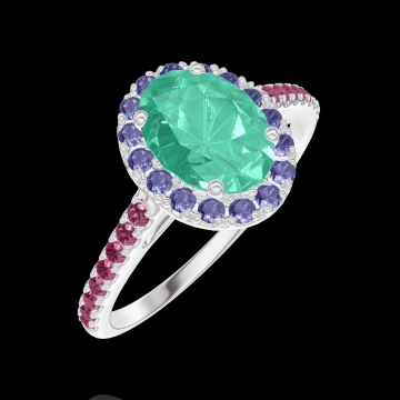 « L'ATELIER » Nº171051Inel Aur alb 18 carate - Smarald Oval 0.5 carate - Halo Safir albastru - Încrustare Rubin 4.5
