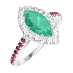 « L'ATELIER » NR. 171115Inel Aur alb 18 carate - Smarald Marquise 0.5 carate - Halo Diamant - Încrustare Rubin