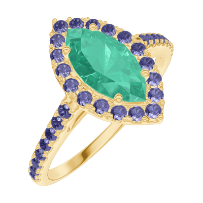 « L'ATELIER » NR. 171149Inel Aur galben 18 carate - Smarald Marquise 0.5 carate - Halo Safir albastru - Încrustare Safir albastru