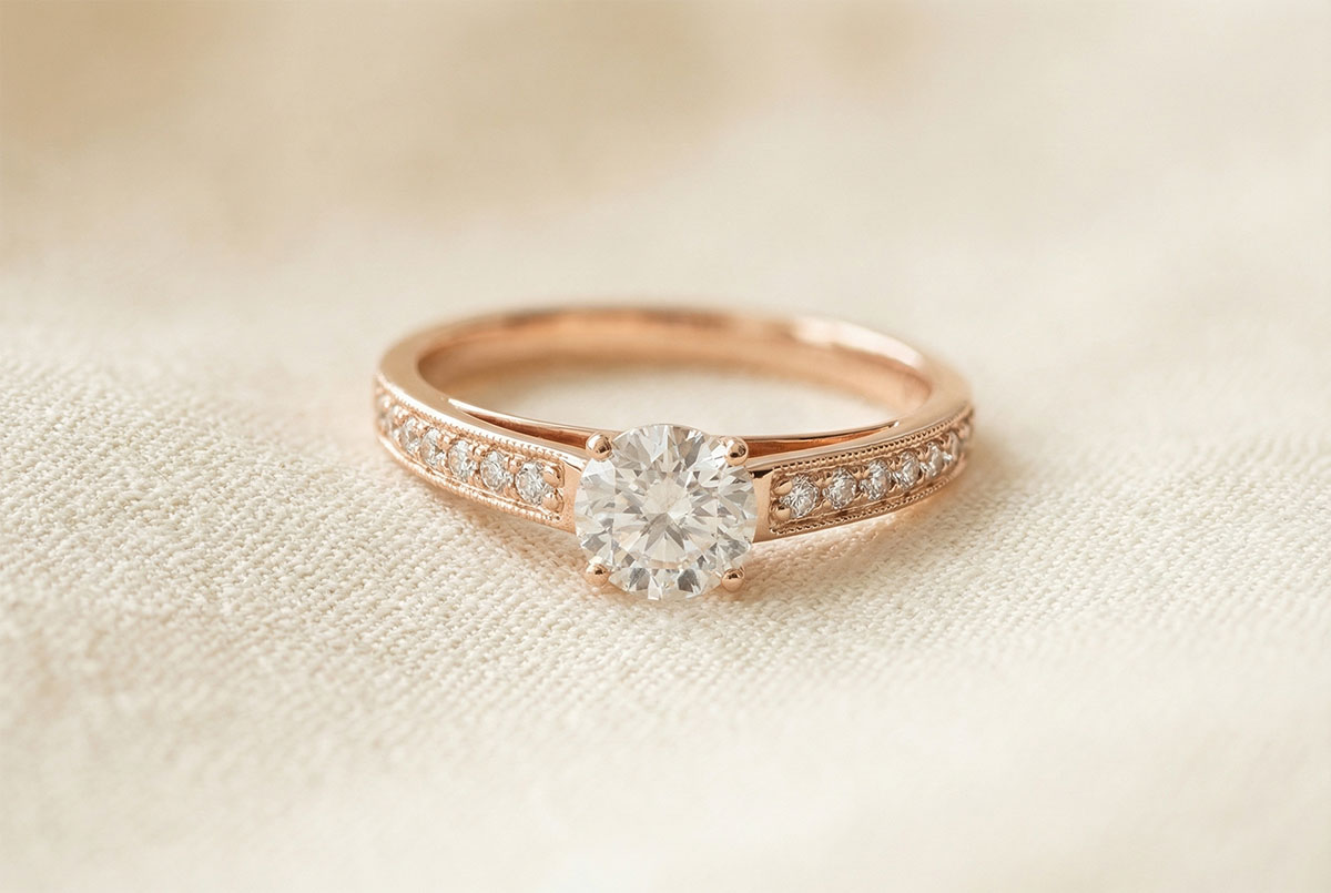 « L'ATELIER » NR. 176190Inel Aur roz 18 carate - Diamante de laborator rotund 0.3 carate - Încrustare Diamante de laborator 4.5