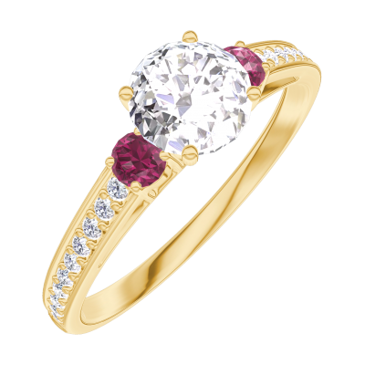 « L'ATELIER » Nº182445Inel Aur galben 18 carate - Diamante de laborator rotund 0.5 carate - Pietre laterale Rubin - Încrustare Diamante de laborator 4.5 (12)