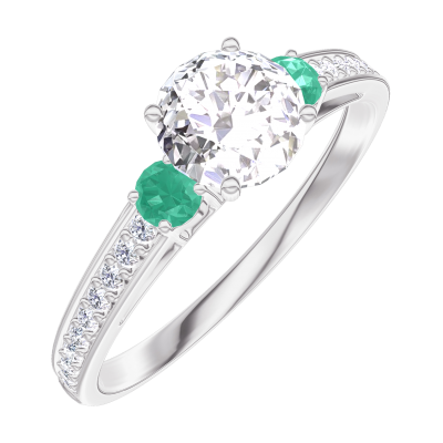 « L'ATELIER » NR. 182487Inel Aur alb 18 carate - Diamante de laborator rotund 0.5 carate - Pietre laterale Smarald - Încrustare Diamante de laborator 4.5