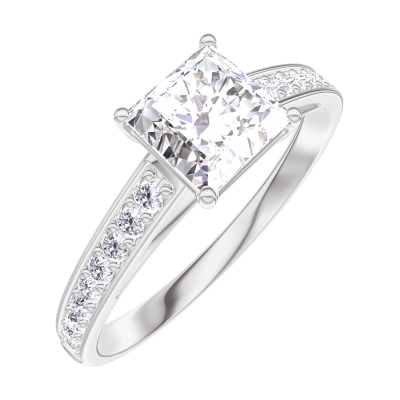 « L'ATELIER » NR. 184908Inel Aur alb 9 carate - Diamante de laborator Princess 0.7 carate - Încrustare Diamante de laborator