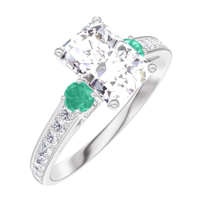 « L'ATELIER » NR. 185087Inel Aur alb 18 carate - Diamante de laborator Smarald 0.7 carate - Pietre laterale Smarald - Încrustare Diamante de laborator
