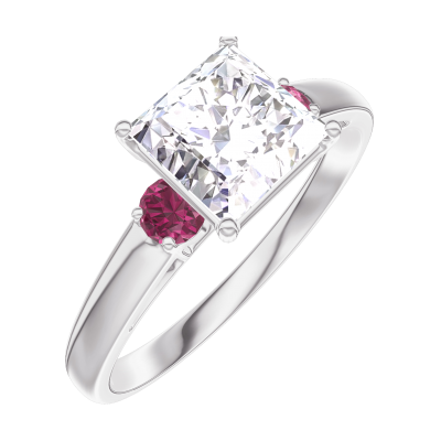 « L'ATELIER » NR. 187344Inel Aur alb 9 carate - Diamante de laborator Princess 1 carate - Pietre laterale Rubin