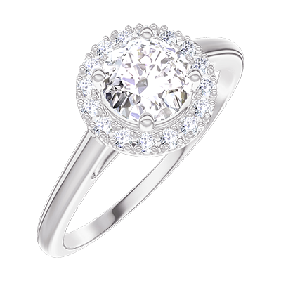 « L'ATELIER » NR. 190004Inel Aur alb 9 carate - Diamante de laborator rotund 0.5 carate - Halo Diamante de laborator 4.7
