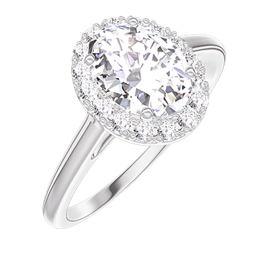 « L'ATELIER » NR. 190148Inel Aur alb 9 carate - Diamante de laborator Oval 0.5 carate - Halo Diamante de laborator 4.5