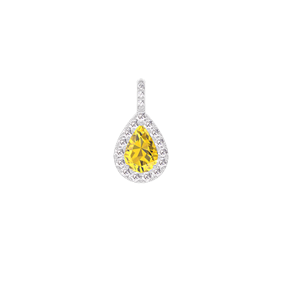« L'ATELIER » NR. 195384Pandantiv Aur alb 9 carate - Safir galben Pară 0.3 carate - Halo Diamant - Încrustare Diamant - Fără lanţ