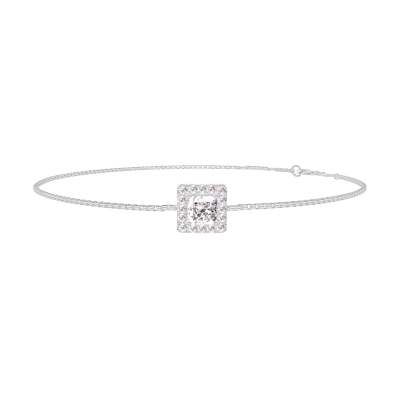 « L'ATELIER » Nº200240Brăţară Aur alb 9 carate - Diamante de laborator Princess 0.3 carate - Halo Diamante de laborator - Lanţ Veneţian