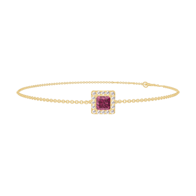 « L'ATELIER » Nº200426Brăţară Aur galben 9 carate - Rubin Princess 0.3 carate - Halo Diamant - Lanţ Zale