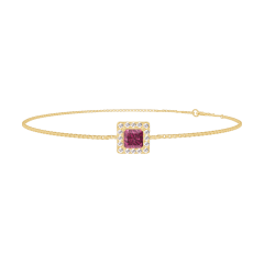 « L'ATELIER » NR. 200429Brăţară Aur galben 18 carate - Rubin Princess 0.3 carate - Halo Diamant - Lanţ Veneţian