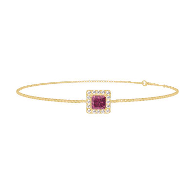 « L'ATELIER » NR. 200429Brăţară Aur galben 18 carate - Rubin Princess 0.3 carate - Halo Diamant - Lanţ Veneţian