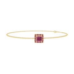 Brăţară Aur galben 18 carate - Rubin Princess 0.3 carate - Halo Rubin - Lanţ Zale