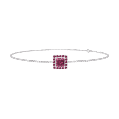 « L'ATELIER » Nº200440Brăţară Aur alb 9 carate - Rubin Princess 0.3 carate - Halo Rubin - Lanţ Veneţian