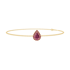 Brăţară Aur galben 18 carate - Rubin Pară 0.3 carate - Halo Rubin - Lanţ Zale