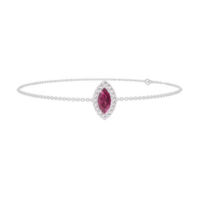 « L'ATELIER » Nº200556Brăţară Aur alb 9 carate - Rubin Marquise 0.3 carate - Halo Diamant - Lanţ Zale