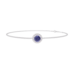 « L'ATELIER » NR. 200591Brăţară Aur alb 18 carate - Safir albastru rotund 0.3 carate - Halo Diamant - Lanţ Veneţian 4.7