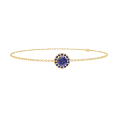 Brăţară Aur galben 18 carate - Safir albastru rotund 0.3 carate - Halo Safir albastru - Lanţ Zale