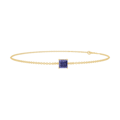 « L'ATELIER » NR. 200610Brăţară Aur galben 9 carate - Safir albastru Princess 0.3 carate - Lanţ Zale