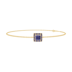 « L'ATELIER » NR. 200633Brăţară Aur galben 18 carate - Safir albastru Princess 0.3 carate - Halo Safir albastru - Lanţ Zale