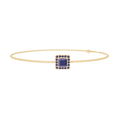 « L'ATELIER » NR. 200634Brăţară Aur galben 9 carate - Safir albastru Princess 0.3 carate - Halo Safir albastru - Lanţ Zale