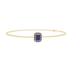 Brăţară Aur galben 18 carate - Safir albastru Smarald 0.3 carate - Halo Safir albastru - Lanţ Zale