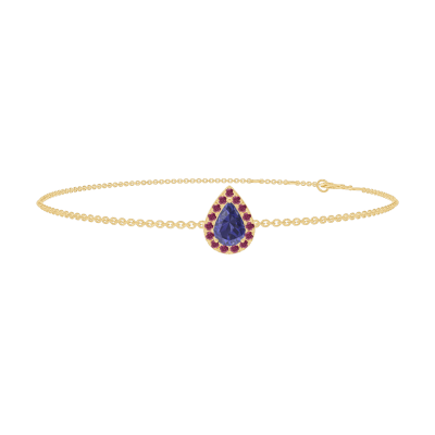 « L'ATELIER » NR. 200721Brăţară Aur galben 18 carate - Safir albastru Pară 0.3 carate - Halo Rubin - Lanţ Zale