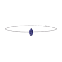 Brăţară Aur alb 18 carate - Safir albastru Marquise 0.3 carate - Lanţ Veneţian