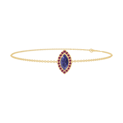 « L'ATELIER » NR. 200754Brăţară Aur galben 9 carate - Safir albastru Marquise 0.3 carate - Halo Rubin - Lanţ Zale