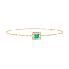 Brăţară Aur galben 9 carate - Smarald Princess 0.3 carate - Halo Diamant - Lanţ Zale