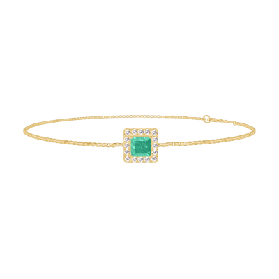 « L'ATELIER » NR. 200813Brăţară Aur galben 18 carate - Smarald Princess 0.3 carate - Halo Diamant - Lanţ Veneţian
