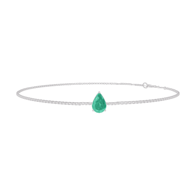 « L'ATELIER » Nº200903Brăţară Aur alb 18 carate - Smarald Pară 0.3 carate - Lanţ Veneţian