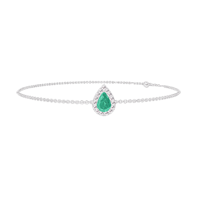 « L'ATELIER » NR. 200908Brăţară Aur alb 9 carate - Smarald Pară 0.3 carate - Halo Diamant - Lanţ Zale