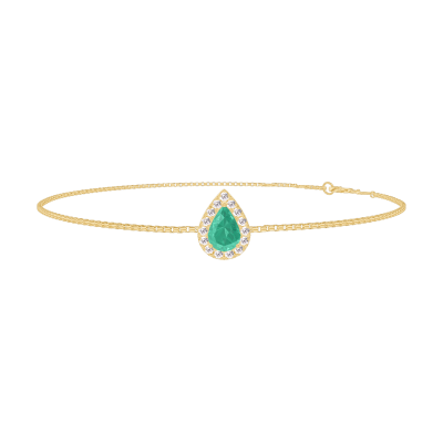 « L'ATELIER » NR. 200910Brăţară Aur galben 9 carate - Smarald Pară 0.3 carate - Halo Diamant - Lanţ Veneţian