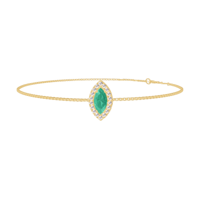« L'ATELIER » NR. 200941Brăţară Aur galben 18 carate - Smarald Marquise 0.3 carate - Halo Diamant - Lanţ Veneţian