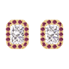 Cercei Aur galben 18 carate - Diamant Smarald 0.3 carate (2 X) - Halo Rubin