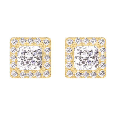 « L'ATELIER » NR. 201078Cercei Aur galben 9 carate - Diamante de laborator Princess 0.3 carate (2 X) - Halo Diamante de laborator