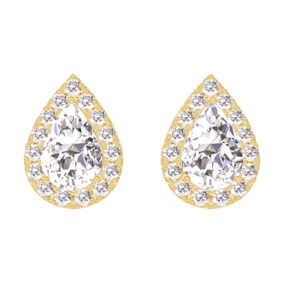« L'ATELIER » NR. 201126Cercei Aur galben 9 carate - Diamante de laborator Pară 0.3 carate (2 X) - Halo Diamante de laborator