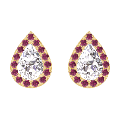 « L'ATELIER » Nº201130Cercei Aur galben 9 carate - Diamante de laborator Pară 0.3 carate (2 X) - Halo Rubin