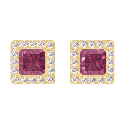« L'ATELIER » NR. 201173Cercei Aur galben 18 carate - Rubin Princess 0.3 carate (2 X) - Halo Diamant