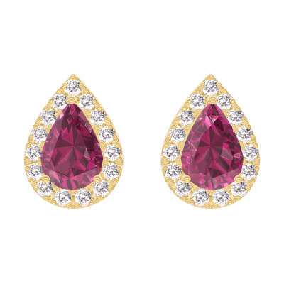 « L'ATELIER » NR. 201222Cercei Aur galben 9 carate - Rubin Pară 0.3 carate (2 X) - Halo Diamant