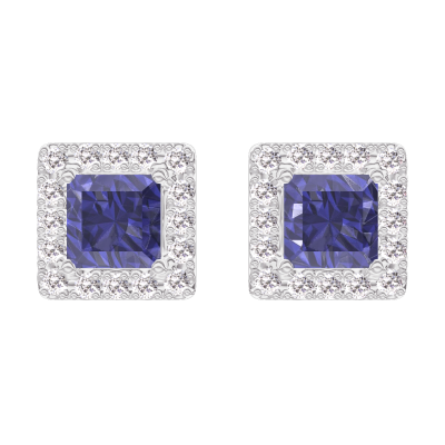 « L'ATELIER » NR. 201272Cercei Aur alb 9 carate - Safir albastru Princess 0.3 carate (2 X) - Halo Diamant