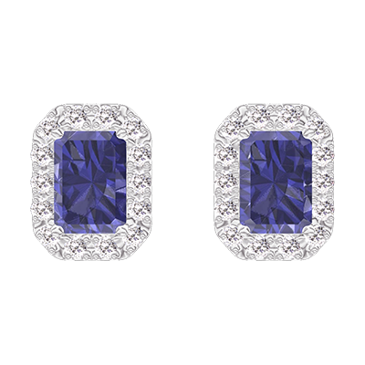 « L'ATELIER » NR. 201287Cercei Aur alb 18 carate - Safir albastru Smarald 0.3 carate (2 X) - Halo Diamant