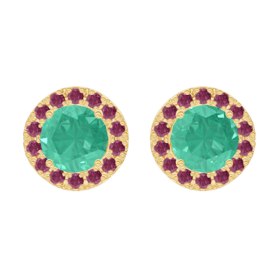 « L'ATELIER » Nº201353Cercei Aur galben 18 carate - Smarald rotund 0.3 carate (2 X) - Halo Rubin 5