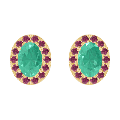 « L'ATELIER » Nº201401Cercei Aur galben 18 carate - Smarald Oval 0.3 carate (2 X) - Halo Rubin